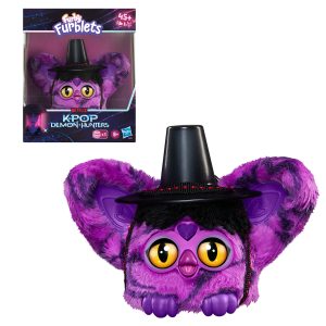 Furblets join the KPop Demon Hunters universe with the Saja Boy Demon edition! This mini FURBY interactive toy comes with Saja Boy’s gat-style hat for display and pretend play. Press the head, heart gem, and mouth to explore over 45 different sound effects. The ears also pop open when you press the head, then fold them over the eyes to do it again. Take your little demon on the go with the keychain clip that’s perfect for cute backpack accessories and more.