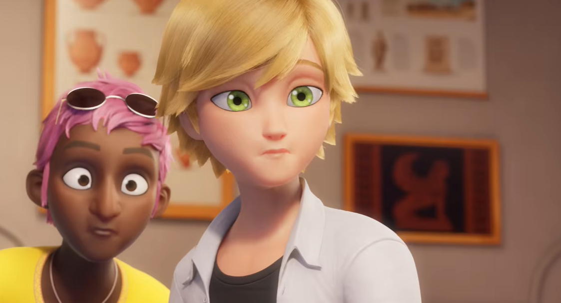 At school Adrien, meanwhile, watches his girlfriend and best friend slip away together, concern written across his face as doubts begin to surface. And then there’s the possibility — hinted heavily — of Marinette being akumatized, forcing Cat Noir to confront the unthinkable: stopping his partner on his own.