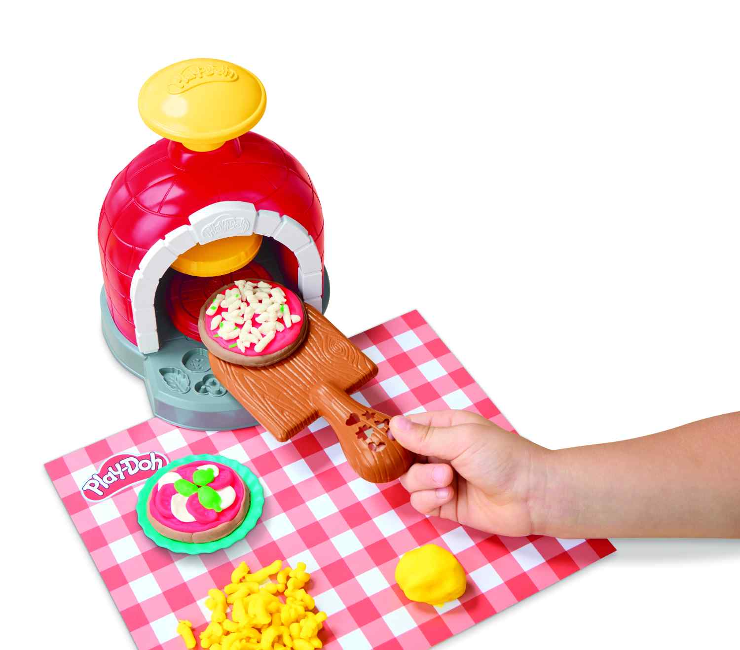 (HASBRO | Ages 3 years and up | Available at most major retailers starting 7/15/26)Share a slice of imagination with the Play-Doh Stamp and Spin Pizza Playset! The pizza toy oven has a cool stamp and spin mechanism that sends a pretend crust twirling out of the oven. Next it’s time to decorate with over 25 make-believe toppings like Play-Doh cheese, meats, and veggies with the cheese grater and molds. 8 Play-Doh tools let kids cut, roll, and customize their kitchen creations. Slice and box it up for delivery to friends and family, then squish it all up and start again!
