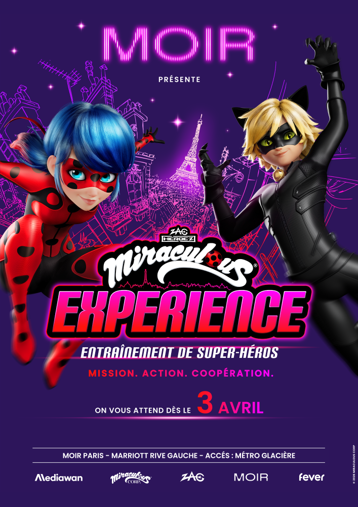 This can’t-miss experience, Miraculous Experience: Superhero Training, opens April 3rd in Paris. The five-level interactive journey spans 1,400 square meters at the Paris Marriott Rive Gauche Hotel and Conference Center. Perfect for kids, families, or any fan of Miraculous, this adventure will challenge participants’ quick thinking, courage, friendship, and creativity—just like their favorite heroes.