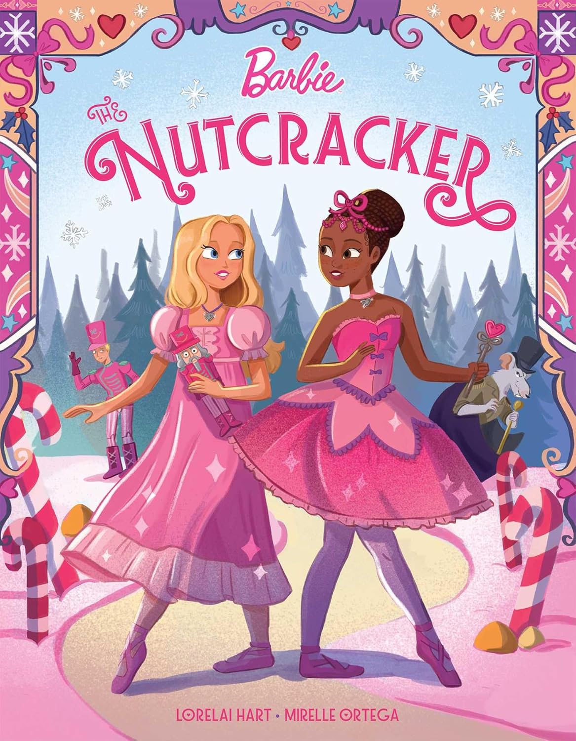 This giftable hardcover storybook retells the all-new Barbie Nutcracker film. It is brought to life by the stunning illustrations of Pura Belpré Honoree, Mirelle Ortega. Barbie “Malibu” and Barbie “Brooklyn” step into a modern version of The Nutcracker. The beautiful illustrations by capture the ballet’s dazzling enchantment as the girls glide from snow-lit streets to the Land of Sweets—peppermint paths, chocolate fountains, and lollipop roads—before they return home for a cozy holiday ending. Timed to celebrate the 25th anniversary of Barbie’s classic Nutcracker film (2001), this storybook is a keepsake families will reach for year after year to read aloud. Features generous foil on the jacket.?